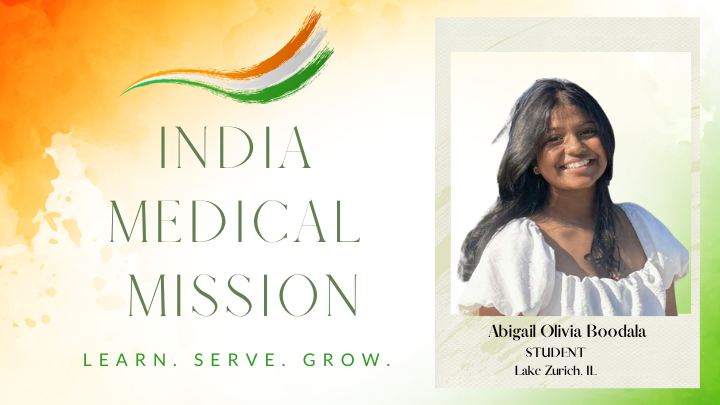 I hope to join the India Medical Mission and serve communities in India that otherwise go unreached and untreated. As an undergraduate student pursuing medicine, I believe that working alongside a team and under healthcare professionals in Hyderabad will build a foundation for learning patient care and treatment, driven by empathy and compassion. I am eager to build impactful connections with the people we serve, and I know that while we will teach public health and safety, I have much to learn as well.