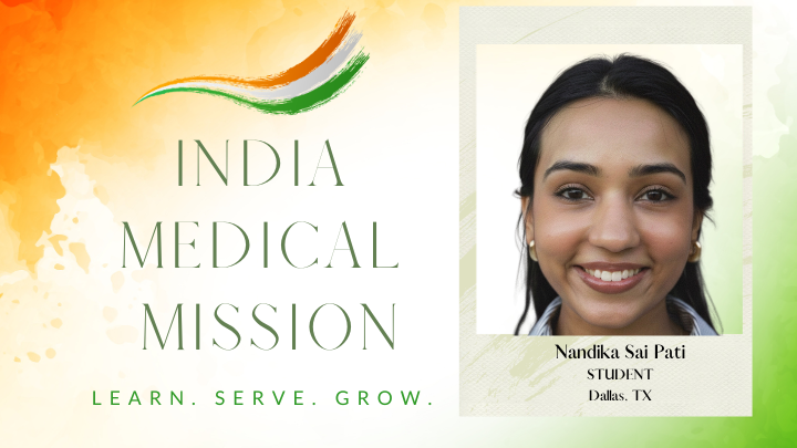 I would like to attend India Medical Mission’s 2026 trip to Hyderabad because I believe it is an incredible opportunity to make a meaningful impact in underserved communities while providing basic medical assistance and promoting public health education. Service and community engagement have always been an important part of my life. Growing up, I participated in various volunteer activities, including organizing clean-up initiatives at my local temple, contributing to service projects as a Boy Scout, and assisting with after-school programs and activities for elementary and middle school students. [Click here to read more and donate]